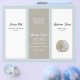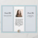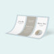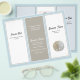 Tri-fold business brochure template in blue and tan colours with sand dollars, logo template and photo. Nature colours of alternating light blue, white and tan panels on both sides of affordable flyer paper let you customise six panels, front and back, with information about the business or service provided. Two photo templates are provided. The sand dollar on the front can be replaced with a logo. The photo template in the centre section is for a personal photo and about section. A small sand dollar decorates the bottom of that panel.