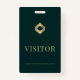 Keep track of visitors and ensure the return of your badges with this simple elegant visitor badge featuring a rich green background, golden typography and a premade gold diamond logo that can customised with your logo. The simple design is professional and perfect for any business or event.