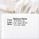 You can replace the display image with your company logo. Four lines of black display text are next to the image. You can edit the text to show your business return address and phone number. The labels are white. The text is black. The text for the business name is in bold type.