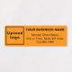 Minimal information are often easy to understand and remember. Adhesive label that you can customize to put minimal information of your business. You can use it as accessory of your product packaging material to promote your brand name. You can also use it as marketing material to advertise your business. Customizable label that you can use to build brand name awareness. Design colors and shape are black texts on orange color background and rectangle shape. To customize this label, upload your business logo, type your business name, address and phone number. After uploading logo and typing texts, please check the appearance. If the appearance is pleasing to you, you can place your order now. If you need to resize and move the logo and texts to fit on this label, please change in the design tool. You can also make other changes in the design tool according to the appearance of this label that you prefer such as changing the background color, font color and font style.