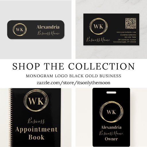 This is a modern and elegant, logo and two initials, monogram, Business design. This stylish design, is in elegant black with gold coloured typography / text. There are gold circles that frame the monogram letters. You can use this as your own logo or add your own. (If adding your own logo, simply delete the initials.) At the bottom in matching gold typography is space for you to add your business name, you can also change the text "Notes" if you want to. To peronalize simply add your details by using the personalise this text box. To customise further, check out the design editing tool, where you have the option of changing the colour or font, if using your own logo, you'll also find an alternative monogram option here as well. If you need help with personalisation, matching products, or for a custom design, contact me via zazzle chat or email: ursuladawnmoon@gmail.com