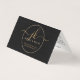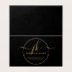Business Monogram Script Logo Black Gold Customer Thank You Folded Enclosure Card. Elegant business thank you enclosure card featuring a professional monogram initials logo in fancy calligraphy script with swashes and your contact information or other custom text in your choice of all colours (shown in gold on black) on the front and your customer message on the back. CHANGES: Change any text font style, colour, size, spacing and placement or background and circle frame colour in EDIT to coordinate with your brand. ASSISTANCE: For help with design modification or personalisation or if you would like coordinating items, contact the designer BEFORE ORDERING via the Zazzle Chat MESSAGE tab or email makeitaboutyoustore@gmail.com.