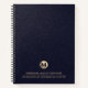 Business Monogram Spiral Notebook featuring brushed gold monogram medallion on rich blue background.