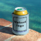 Can cooler that you can customise. You can put your business name and logo on it to build brand name awareness. Design is dark blue and black fonts on light blue background. Customise it to advertise your business or to promote your brand name to your customers while they are enjoying the drinks that you sold to them. To customise this can cooler, upload your business logo, type your business or company name, address and phone number then check the appearance. If the appearance is pleasing to you, you can place your order now. If you need to resize and move the logo and texts to fit on this can cooler or on the other style of cooler, please change in the design tool. You can also make other changes according to your preference in the design tool such as changing the cooler colour, font colour and font style.