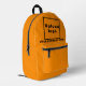 Orange colour backpack that you can customise by typing your business name and uploading your business logo. Bag that you can include in your promotional products, giveaway items or gifts to your customers or clients, a marketing strategy to advertise your business or to promote your brand name. Customisable backpack that you can use to build brand name awareness. Please check the appearance after typing your business name and uploading your business logo. If the appearance is pleasing to you, you can place your order now. If you need to resize and reposition your business name and logo to fit in the template, please adjust in the design tool. You can also change the background colour, font colour and font style in the design tool.