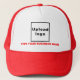 Trucker hat that you can customize to put your business name. You can give it as giveaway item or gift to your customers. You can also include it in your marketing materials to advertise your business or in your promotional products to promote your brand name. Trucker hat with your business name and logo to build brand name awareness. It can also be used as uniform. Colors are red and white. To customize this trucker hat, upload your business logo and type your business or company name then check the appearance. If the appearance is pleasing to you, you can place your order now. If you need to resize and move the logo and texts to fit on this hat or on other styles that you will choose, please change in the design tool. You can also change the font color and font style in the design tool.