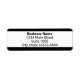 These business return address labels are black and white. There are four lines of black display text for your business name and return address. All text can be edited or deleted. Black horizontal lines are at the top and bottom of the label.