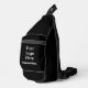 This black crossbody sling bag has a placeholder image. You can replace it with your company logo. White display text is under the image. You can edit the text to show your custom message such as your business name.