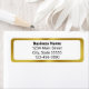 These business return address labels have four lines of text. The top line is in bold for the business name. Three additional lines of text are available for your street address, city, state, zip code, and phone number. The label has a faux (not foil) gold border.