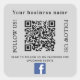 A light grey background, making them perfect for professionals who want to make a memorable impression. Personalise and add your business name, your own qr code to your Facebook account and a text. Black text. With the text x2: Follow us!
