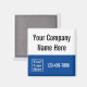 This blue and white magnet has display text you can edit to meet your needs. You can add your company name, phone number, and business logo. The top half is white with black text for your company's name. The bottom half is deep blue with white text for the company's phone number and a place to add your company's logo.