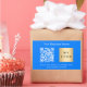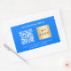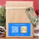A light, bright blue background. Personalise and add your business name, your own business logo, qr code to your website and a text. White text.