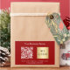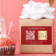 A red background. Personalise and add your business name, your own business logo, qr code to your website and a text. White text.