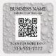 Personalise with your QR Code in any dark colour. Add your Business Name, website, message and phone in black text with water drops on grey background.