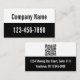 Promote your company's services wherever you go with this black and white business card. You can edit the text and to add company name and your phone number. On the back, the QR code image can be replaced with the correct image and lines for your business address or a custom message. All text can be edited or deleted.