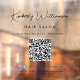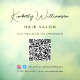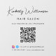 Chic custom window decal cling sign for your business featuring your name in a stylish signature script and business type below in simple modern typography. Input your website URL address to create a QR code for customers and clients to scan for a list of your products, services, hours, etc. Add your instagram and facebook user ids for customers to follow you on social media.