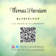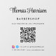 Elegant custom window cling for your business featuring your name showcased in a stylish signature script and business type in simple modern lettering. Input your website address to create a QR code for customers and clients to scan for a list of your products, services, hours, etc., and add your instagram and facebook user ids for customers to follow you on social media.