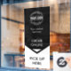 This is a black and white "Online Order Pick Up Here" window cling with a down arrow and text. It is used to indicate where customers can pick up their online orders. Clear message and easy to spot. A great order pickup sign for restaurants, shops, and other small businesses.