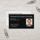 Business performance coaching business cards with photo template you can replace with your own professional portrait for a more personalised design. Created for anyone who coaches executives, leadership, and works with groups or individuals.