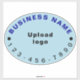 Light blue oval large vinyl sticker that you can customise for customers to easily find your business phone number when they need to call you or place their orders. You can use it marketing material to advertise your business. You can also use it as product label for large boxes. Colour is light blue. Font colours are dark blue and black. To customise this sticker, upload logo, type business or company name and phone number. After uploading logo and typing the texts, check the appearance. If the appearance pleases you, you can place your order now. If you need to resize and move your logo and texts to fit on this sticker or on other sizes that you will choose, click customise further. After resizing and moving the logo and texts, click done.