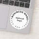 Round vinyl sticker that you can customise to put your business phone number for customers or clients to easily find it when they need to call you to place their orders or ask enquiries about your products or services. You can use it as marketing material to advertise your business or to promote your brand name. You can also use it as accessory of packaging material of your product. Customisable vinyl sticker that you can use to build brand name awareness. Design colours are black texts on white background. To customise this sticker, upload your business logo, type your business name and phone number. After uploading logo and typing texts, please check the appearance. If the appearance is pleasing to you, you can place your order now. If you need to resize and move the logo and texts to fit on this sticker or on the size that you will choose, please change in the design tool. You can also change the background colour, font colour and font style in the design tool.
