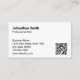 This white business card has black text that you can edit to show the details about you and your business. There are lines for your name, professional job title, business name, address, phone number, and website. All text can be edited or deleted. There's a template for your QR code. (Remember to enter your website URL for the QR code to work correctly.)