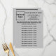 Flat menu card that you can customise and use as marketing material to advertise or promote your products or services. Customisable card to show the list of your products or services and prices. Designs are black texts on grey background and portrait format rectangle shape. To customise this flat menu card, upload your business logo, type your business or company name, address, phone number, e-mail, website or social media page, your products or services, prices and a short but attractive description of your business. After uploading logo and typing texts, please check the appearance of the font and back sides. If the appearance is pleasing to you, you can place your order now. If you need to resize and move the logo and texts to fit on this flat menu card or on other shapes, sizes and styles that you will choose, please change in the design tool. You can also make other changes according to the appearance that you prefer in the design tool such as changing the background colour, font colour, font style, editing texts, adding texts and deleting texts.