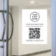 Modern white window cling sign for your business with your QR code for customers to scan for a list of your products, services and prices. Add your logo, business name, QR code, phone number and street address in simple typography.