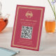This branded tabletop sign provides an easy and contactless way for customers to access your list of services and prices. An elegant design featuring classic typography and a simple art deco border. Personalise the template with your company logo, QR code, social media and website — text can be customised to suit different purposes. Additionally, you can change the background colour using the design editor tool. This pedestal sign is ideal for a variety of businesses, including restaurants, cafes, bars, stores, salons, barbers and more! Printed colours: red and gold colour. If you’d like your logo to coordinate with the gold type colour, the Hex colour code is #DEBE79
