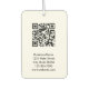 This white car air freshener has a QR code near the top. You can enter your website URL to create a custom QR code. There's white display text that you can replace with your custom message such as your business name, address, phone number, and website.