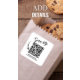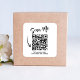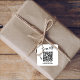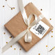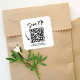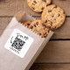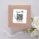 This design features a white simple sticker, with a QR code, great for promotional packaging, and perfect for any small business, with a simple create your own template, with a scan me, and arrow, it a minimalist, minimal style. With Scan me lettering and arrow.