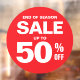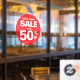 Business Sale 50% Shop Sign Red Round Window Decal