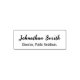 This text template has two lines of display text. The top line is an elegant script that you can edit to show a name as a signature. The bottom line is printed display text for your job title or a custom message.