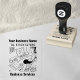 Fun Business Services rubber stamp with a cartoon illustration plus your business name and telephone number. Stationery store rubber stamp.