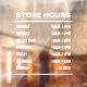 Window sign for store hours of operation. Personalise it with your shop's personal business hours.