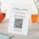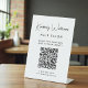 Chic custom pedestal tabletop sign for your business featuring your name showcased in a stylish signature script and business type below in simple modern lettering. Input your website address to create a QR code that customers and clients can scan for appointments, products, services, hours, etc.