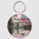 A Business Christmas Snowy Landscape Thank you keychain of the beautiful Scottish Loch Eilein in the Rothiemurchus Forest in the Cairngorms National Park, during a colourful winter sunset. An area of outstanding natural beauty. The keychain features a loch surrounded by a snow covered pine forest The photograph was provided by Reg K Atkinson@ Redbubble. The item can be customised by changing "Thank You!" then personalised it by changing the business name and / or a short message An ideal Christmas holiday season thank you gift for companies and business to give to clients, customers and staff.