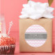 Customisable thank you company name and contact information business stickers in light pastel baby pink, grey and white retro chevron zigzags stripes pattern, perfect for adding your information to bags, parcels or envelopes. Contact us for a custom colour or for matching small business products.