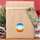 Thank You product or packaging sticker created in gradient sunrise colors with a teal blue heart in the center. The thank you text is in a curved bold script and ready for you to purchase as is, or edit with your own personalized wording.