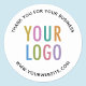 Personalise our round business thank you stickers with your company logo and custom text. These are professional scratch resistant stickers printed on acid-free paper. You can customise the words "Thank You for Your Business" to your own message in your preferred language. Available in a glossy or matte finish as 1.5 inch or 3 inch stickers. The small 1.5 inch stickers can be used as mail seals or packaging stickers. Low minimum order quantity and no setup fee.