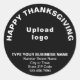 Thanksgiving sticker to greet your customers. Sticker that you can use as marketing material to advertise your business and promote your brand name. Sticker with thanksgiving greeting and with your business name to build brand name awareness. You can also use it as product label this thanksgiving season. Sticker shape is round. Design is simple white font on black background. To customise this sticker, upload your business logo, type your business or company name, address and phone number then check the appearance. If the appearance is pleasing to you, you can place your order now. If you need to resize and move the logo and texts to fit on this sticker or on other shapes and sizes that you will choose, please change in the design tool. You can also make other changes according to your preference in the design tool such as changing the sticker colour, font colour and font style. Happy Thanksgiving!