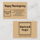 Happy Thanksgiving! Holiday to celebrate this November to thank for the blessings that we received. It is also one of the holidays to advertise your business. Enclosure card that you can customise to put your business brand and with Thanksgiving greeting. Customise it and use it to greet your customers or clients this Thanksgiving and as marketing material to advertise your business or to promote your brand name. You can also use it as accessory of packaging material of your product. Customisable enclosure card that you can use to build brand name awareness. Design colours are black and dark brown texts on light brown background. To customise this enclosure card, upload your business logo, type your business name, address, phone number, e-mail and website or your business social media page. Please check the appearance on front and back sides after uploading logo and typing texts. If the appearance is pleasing to you, you can place your order now. If you need to resize and move the logo and texts to fit on this enclosure card or on the size that you will choose, please change in the design tool. You can also change the background colour, font colour and font style in the design tool. Happy Thanksgiving! Wishing you more sales this holiday.