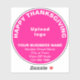 Happy Thanksgiving! Holiday to celebrate this November to thank for the blessings that we received. It is also one of the holidays to advertise your business. Round shape vinyl sticker with Thanksgiving greeting, your business name and other information of your business. You can use it as accessory of your product packaging material. You can also use it as marketing material to advertise your business or to promote your brand name to customers or clients. Customisable sticker that you can use to build brand name awareness. Design colours are white texts on pink background. To customise this sticker, upload your business logo, type your business name, address and phone number. Please check the appearance after uploading logo and typing texts. If the appearance is pleasing to you, you can place your order now. If you need to resize and move the logo and texts to fit on this sticker or on the size that you will choose, please change in the design tool. You can also make other changes in the design tool according to the appearance of this sticker that you prefer such as changing the background colour, font colour and font style. Happy Thanksgiving! Wishing you more sales this holiday.