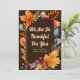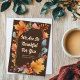 We are so thankful for you cards. Beautiful dark brown Thanksgiving card for a business to send to clients their gratitude during the holiday season. Customise with your company name inside the watercolor fall foliage of orange leaves. Custom message on the back for autumn marketing.