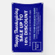 Happy Thanksgiving! Holiday to celebrate this November to thank for the blessings that we received. It is also one of the holidays to advertise your business. Customisable rectangle banner with Thanksgiving Sale, your business name and other information. Banner that you can use as marketing material to attract more customers. Customise it and display it to convince more customers to buy your products or clients to like your services. Design colours are light blue and white texts on blue background. Contents are Happy Thanksgiving greeting, sale texts with percent discount that you will offer, sale dates, your business name, logo, address, phone number, e-mail and website or your business social media page. Please check the appearance after uploading logo and typing texts. If the appearance is pleasing to you, you can place your order now. If you need to resize and move the logo and texts to fit on this banner or on the size that you will choose, please change in the design tool. You can also change the background colour, font colour and font style in the design tool. Happy Thanksgiving! Wishing you more sales this holiday.