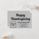 Happy Thanksgiving! A holiday to celebrate and to thank for the blessings that we received. It is also one of the holidays to advertise your business. Small size flat card that you can customise to put your business brand and with Thanksgiving greeting. Customise it and use it to greet your customers or clients this Thanksgiving and as marketing material to advertise your business or to promote your brand name. You can also use it as accessory of packaging material of your product. Customisable card that you can use to build brand name awareness. Design colours are black texts on grey background. To customise this card, upload your business logo, type your business name, address, phone number, e-mail and website or your business social media page. Please check the appearance after uploading logo and typing texts. If the appearance is pleasing to you, you can place your order now. If you need to resize and move the logo and texts to fit on this card or on other sizes that you will choose, please change in the design tool. You can also change the background colour, font colour and font style in the design tool. Happy Thanksgiving! Wishing you more sales this holiday.