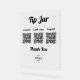 Enhance your tipping experience with our personalised acrylic sign. The heading 'Tip Jar' is beautifully presented in retro script. Scan any of the three QR codes below for easy digital payments. Thank you for your generosity!