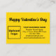 Happy Valentine’s Day! A lovely holiday to celebrate this February and to advertise also your business or to promote your brand name. Enclosure card that you can customise to put your business brand and with Valentine’s Day greeting. Customise it and use it to greet your customers or clients this Valentine’s Day and as marketing material to advertise your business or to promote your brand name. You can also use it as accessory of packaging material of your product. Customisable enclosure card that you can use to build brand name awareness. Design colours are black texts on yellow background. To customise this enclosure card, upload your business logo, type your business name, address, phone number, e-mail and website or your business social media page. Please check the appearance on front and back sides after uploading logo and typing texts. If the appearance is pleasing to you, you can place your order now. If you need to resize and move the logo and texts to fit on this enclosure card or on the size that you will choose, please change in the design tool. You can also change the background colour, font colour and font style in the design tool. Happy Valentine’s Day! Wishing you more sales this holiday.