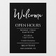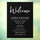 Business and Open Hours Company Window Cling Sign. Elegant Serif Fonts. Large type for easy reading. Easy to personalise for your own company needs.