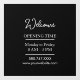 Greet your customers with this professional business welcome and open hours window cling. Easily customize with your business name, logo, and operating hours for a clean, modern look. Perfect for storefronts, cafes, offices, and small businesses, this removable cling enhances visibility and ensures your clients know when you’re open, making a great first impression.